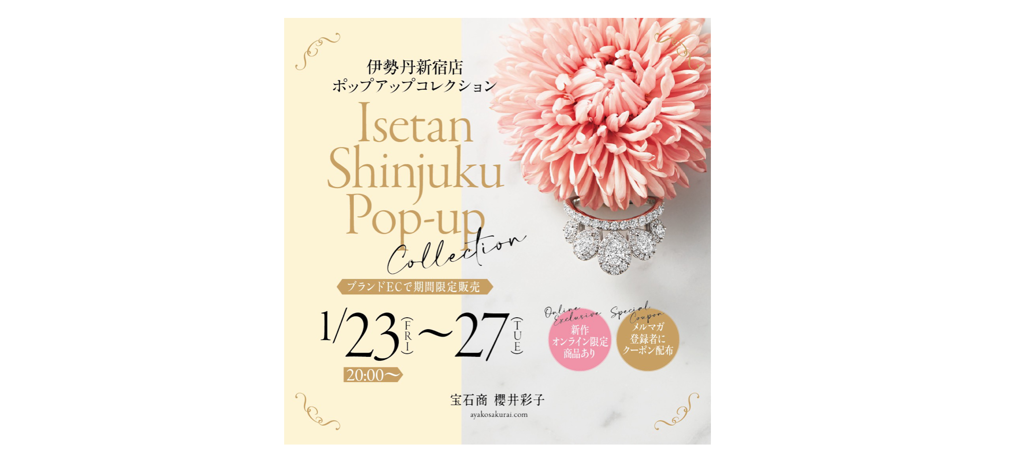 春新作ジュエリーも登場! 伊勢丹新宿店展示コレクションをサイトにて販売します✨