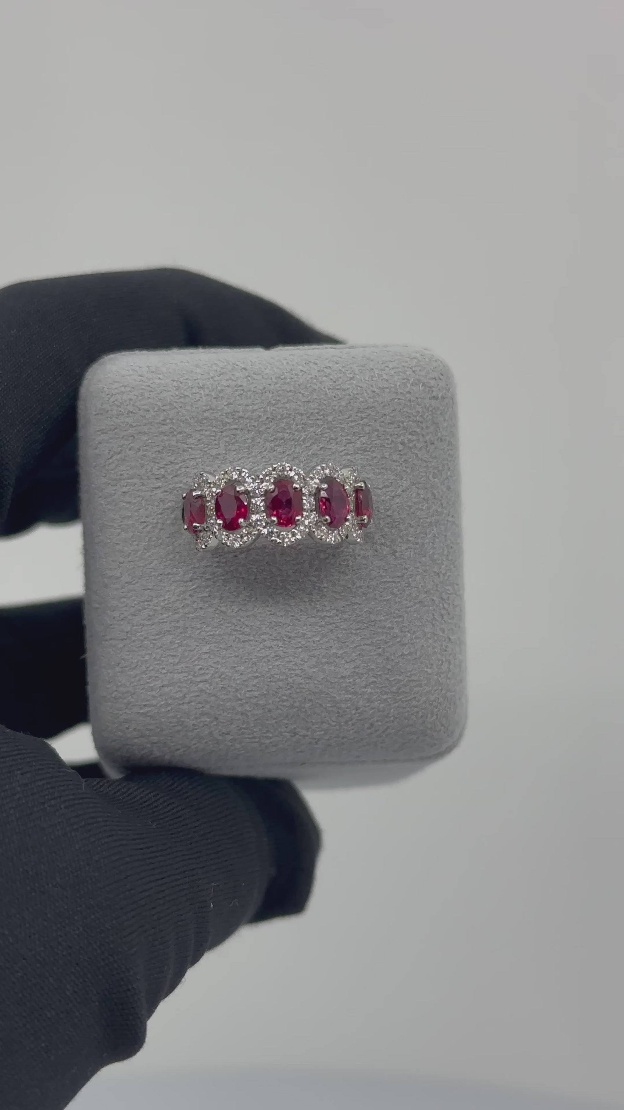 前回までに使用していたルビーは、赤が濃く、密度感(=詰まり)のある美しさが特徴でしたが、今回のルビーはそれに比べて透明感と照りが際立ち、真っ赤に近い印象です。これはあくまで「前回との比較」であり、どちらも非常に美しい個体ですので、どうぞご安心くださいませ。