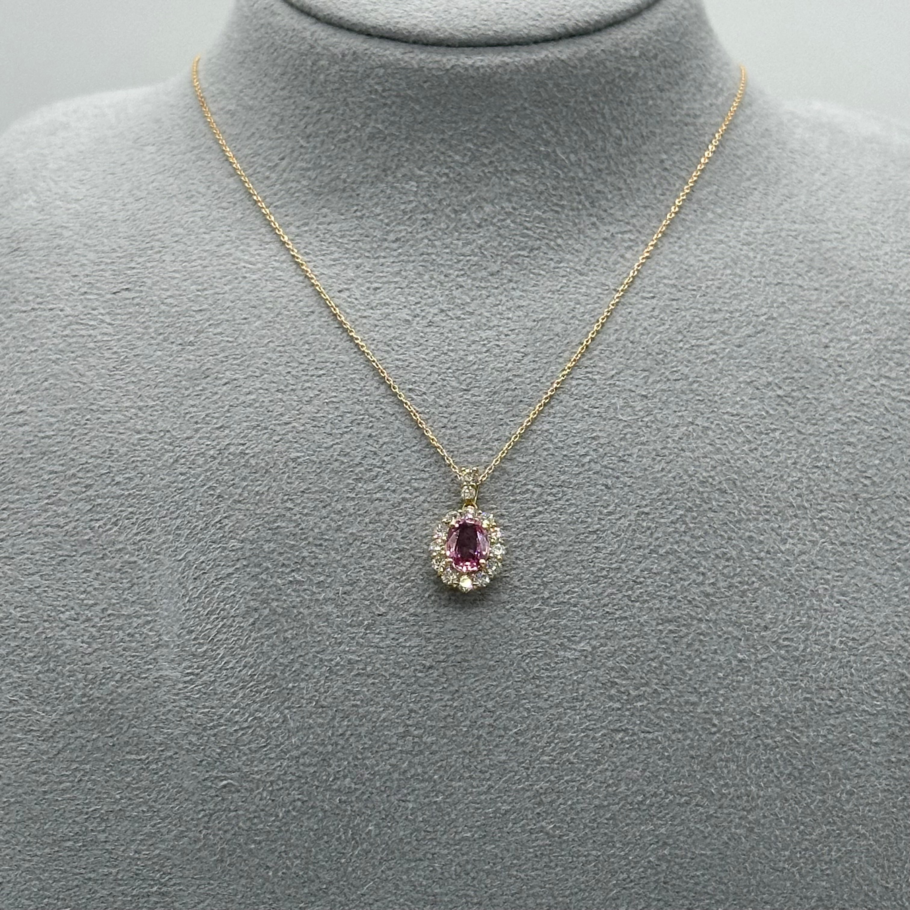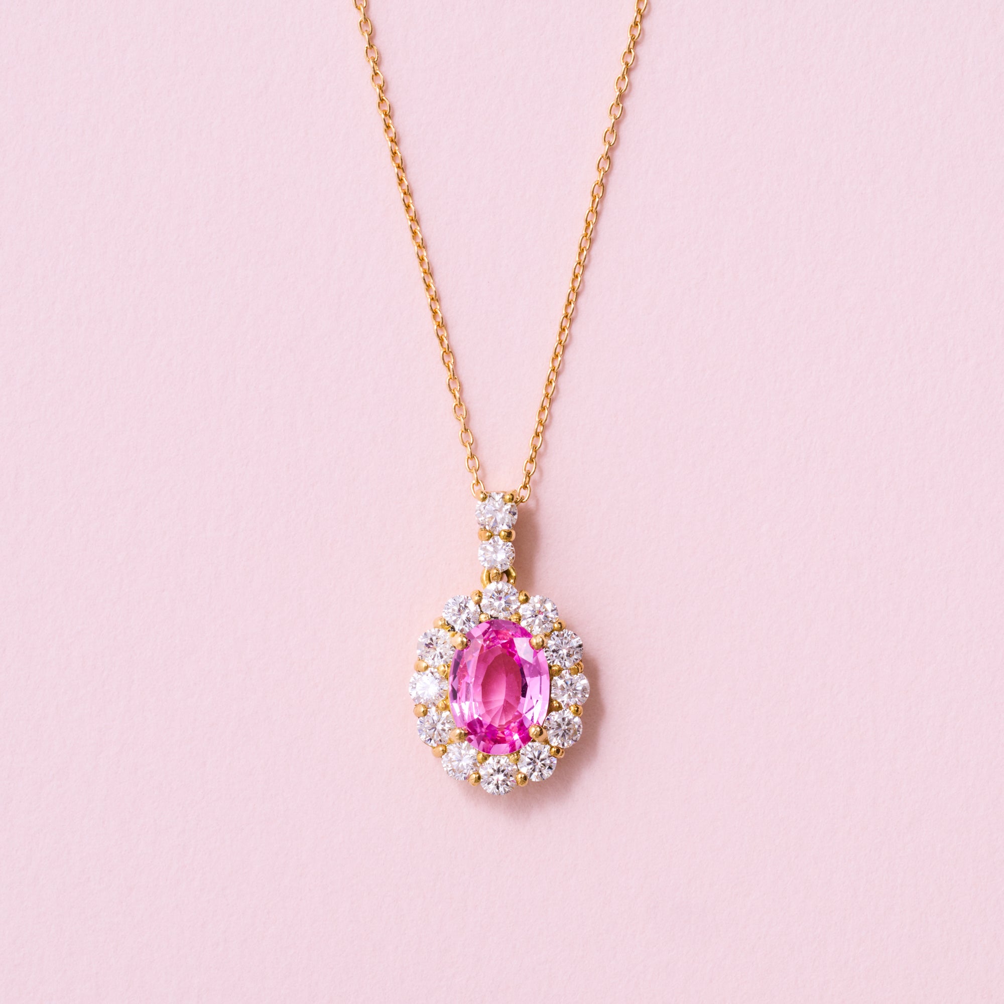 ②パパラチア サファイア K18YG ダイヤ取巻きネックレス