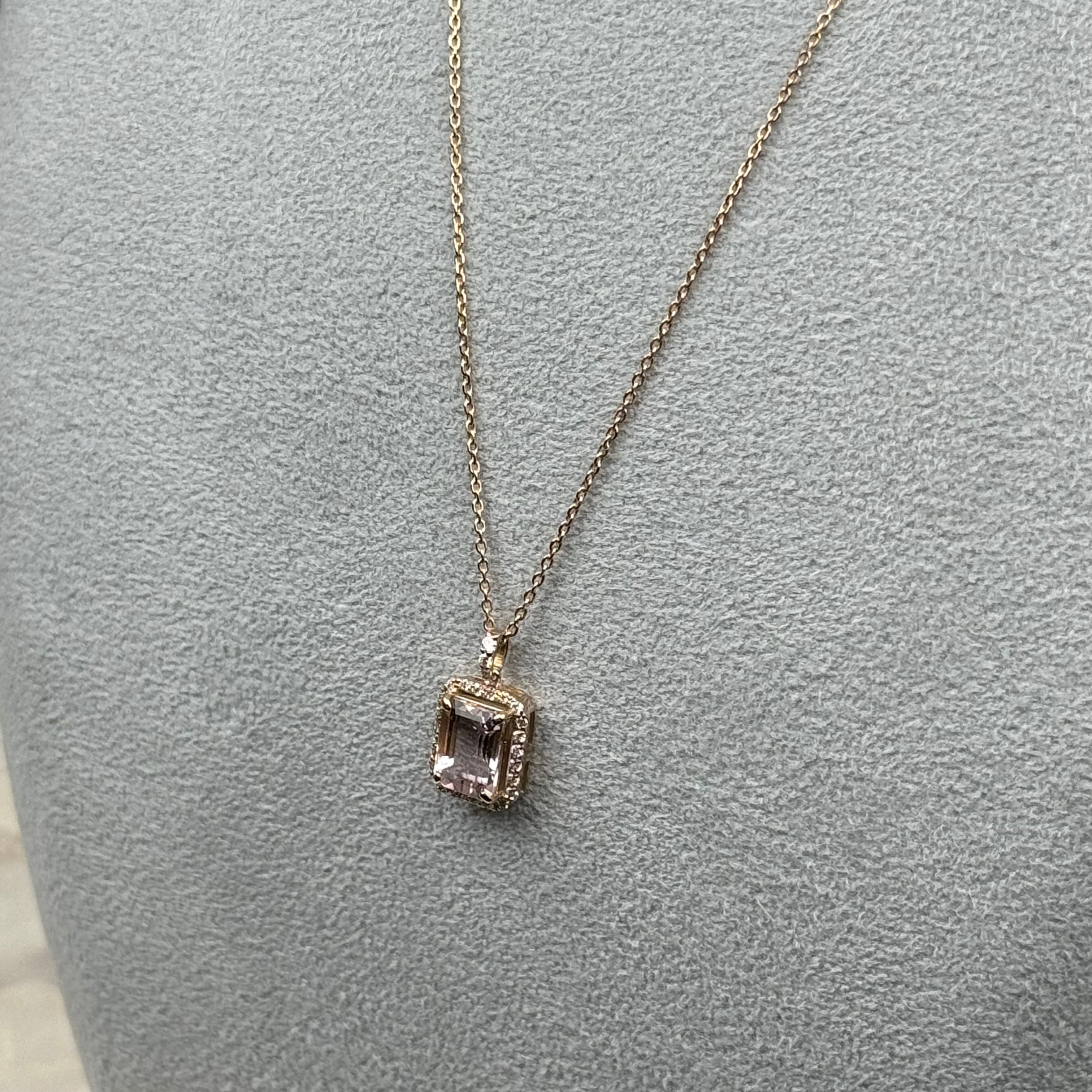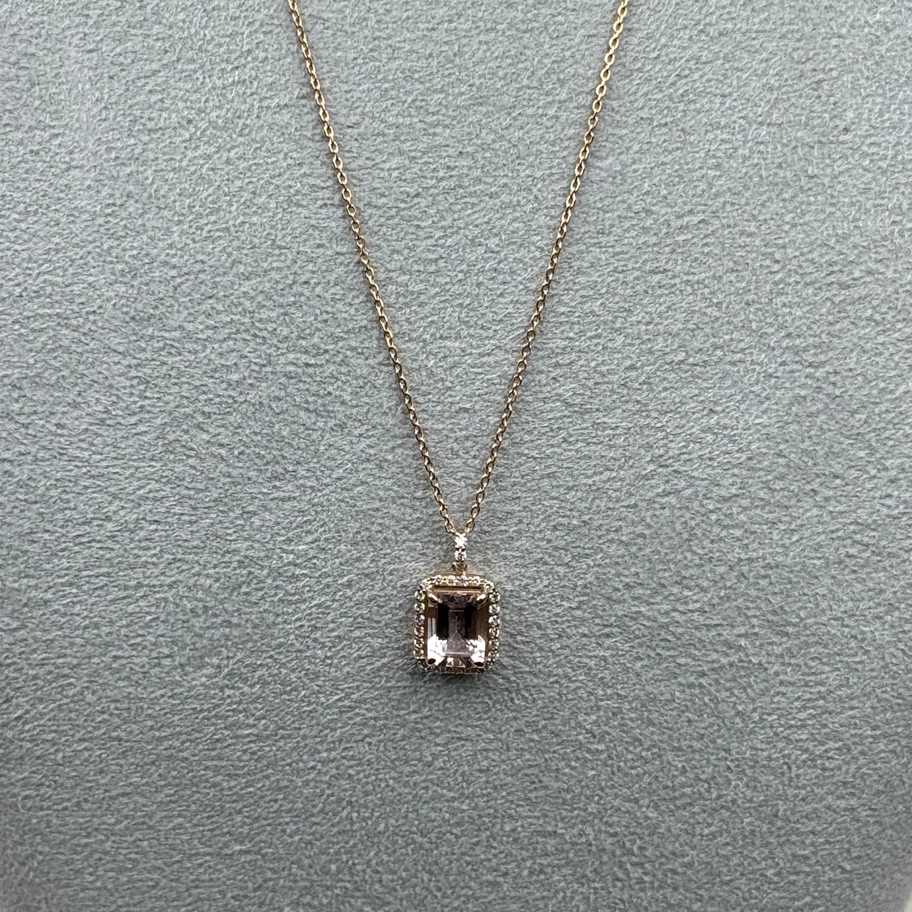 502[一点物]ネックレス モルガナイト 1.4ct SQ K18PG